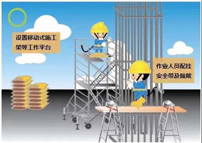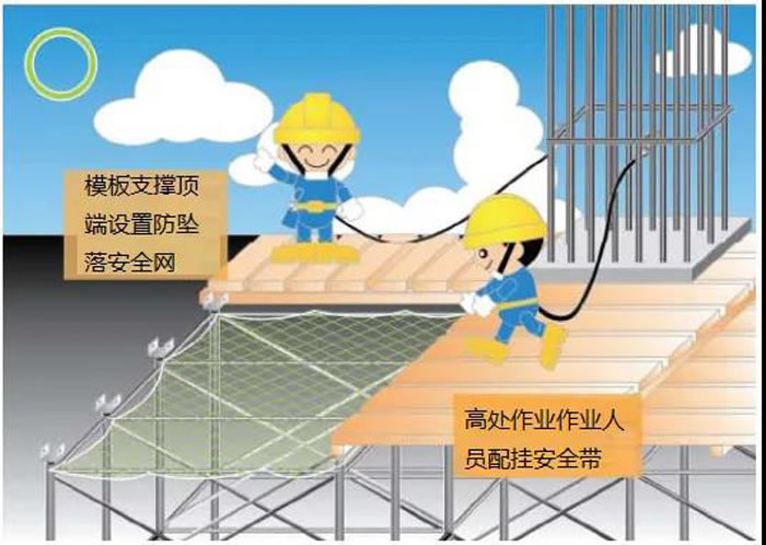 (2)重點(diǎn)部位項(xiàng)目,除在危險(xiǎn)部位設(shè)置護(hù)欄,立網(wǎng)、滿鋪架板、蓋好洞口外,還應(yīng)在操作人員下方設(shè)平網(wǎng)和檢查作業(yè)人員是否正確使用防護(hù)用具,嚴(yán)格執(zhí)行安全管理專業(yè)人員旁站監(jiān)督制度。
