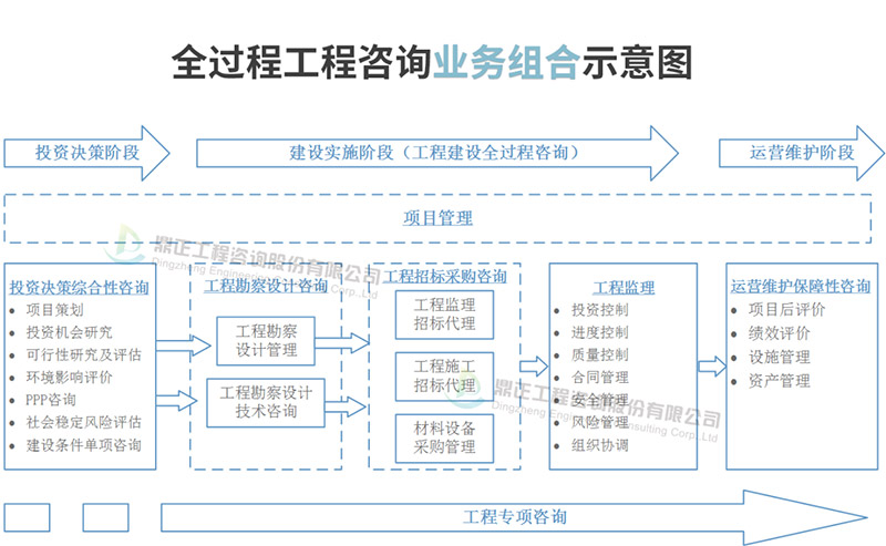 全過程工程咨詢是指工程咨詢方綜合運用多學科知識、工程實踐經驗、現代科學技術和經濟管理方法,采用多種服務方式組合,為委托方在項目投資決策、建設實施乃至運營維護階段持續提供局部或整體解決方案的智力性服務活動。