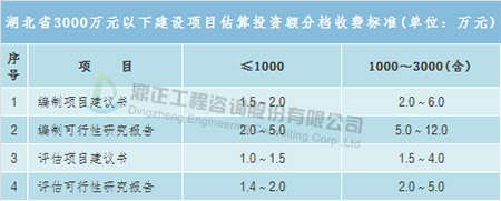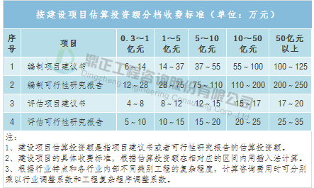 投資決策咨詢包括編制項目建議書、編制可行性研究報告、評估項目建議書、評估可行性研究報告等,取費可參考《國家計委關于印發建設項目前期工作咨詢收費暫行規定的通知》(計價格〔1999〕1283號),該文件提出了投資額在3000萬元以上的建設項目前期工作咨詢收費標準,而投資額3000萬元以下的建設項目由各省自行制定,如湖北省制定了相應的地方標準——《省物價局關于制定估算投資額3000萬元以下建設項目前期工作咨詢收費標準的通知》(鄂價房服〔2001〕107號),具體收費標準根據估算投資額在收費標準相對應的區間內用插入法計算。