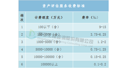 資產評估服務取費標準可參考《國家發展改革委、財政部關于發布<資產評估收費管理辦法>的通知(發改價格〔2009〕2914號》)、《關于貫徹實施<資產評估收費管理辦法>盡快做好資產評估收費管理工作的通知》(中評協〔2009〕199號)。