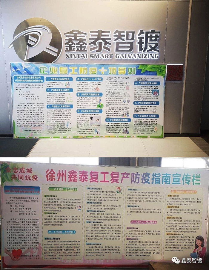 《徐州鑫泰鍍鋅設備有限公司復工復產疫情防控工作應急預案》。