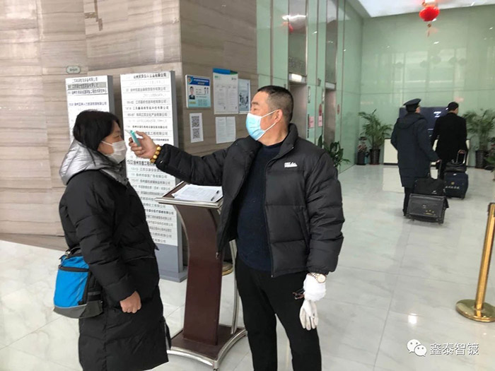 對于出入的鑫泰員工進行體溫二次測量,確保體溫準確無誤。