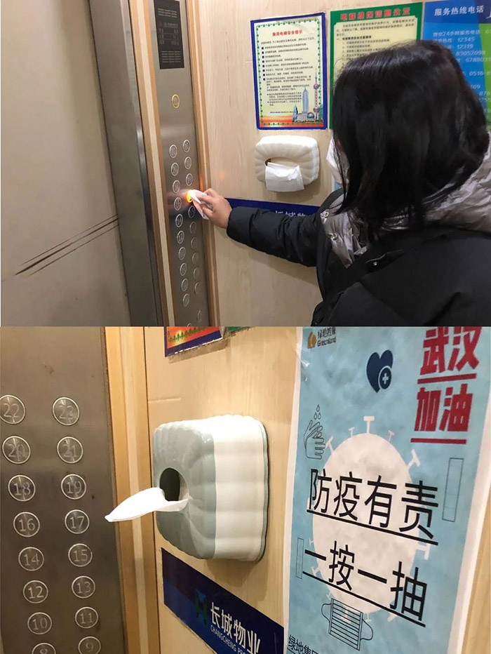 為員工提供電梯抽紙,防止電梯按鍵細菌交叉感染。
