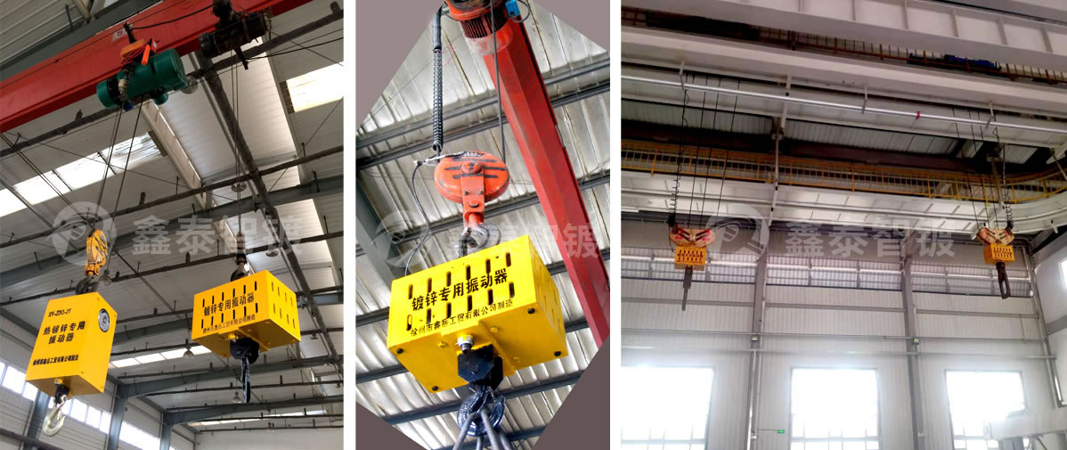 4、工作時待工件全部浸入鋅液后,開啟電源使其振動。由于振動頻率高,振幅適中,振動力通過鋼絲繩傳導至工件,使其在鋅液中高頻振動。“灰、渣”泛完后,關閉電源,停下振動器,用打灰刀將懸浮的"灰渣"打干凈。然后用行車以1.2米~1.5米/分鐘的速度將工件提出鋅液。 5、待工件全部離開鋅液面后開啟振動器,使工件上多余的鋅瘤經(jīng)振動后落入鋅鍋內。